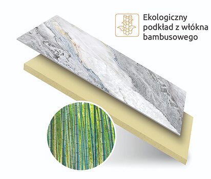 - Rdzeń kompozytowy bambusowo-węglowy (3 mm / 6 mm) – wzmacnia sztywność panelu i zwiększa odporność na nacisk punktowy oraz obciążenia mechaniczne.