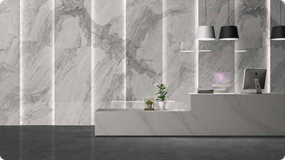 Znaczny rozmiar płyt redukuje liczbę połączeń, potęgując wrażenie monolitycznej struktury ściany i podnosząc prestiż wizualny realizacji. To rozwiązanie szczególnie doceniane w projektach o wysokich wymaganiach estetycznych, gdzie kluczowe znaczenie ma skala formatu, spójność grafiki oraz wyrafinowany charakter wykończenia.